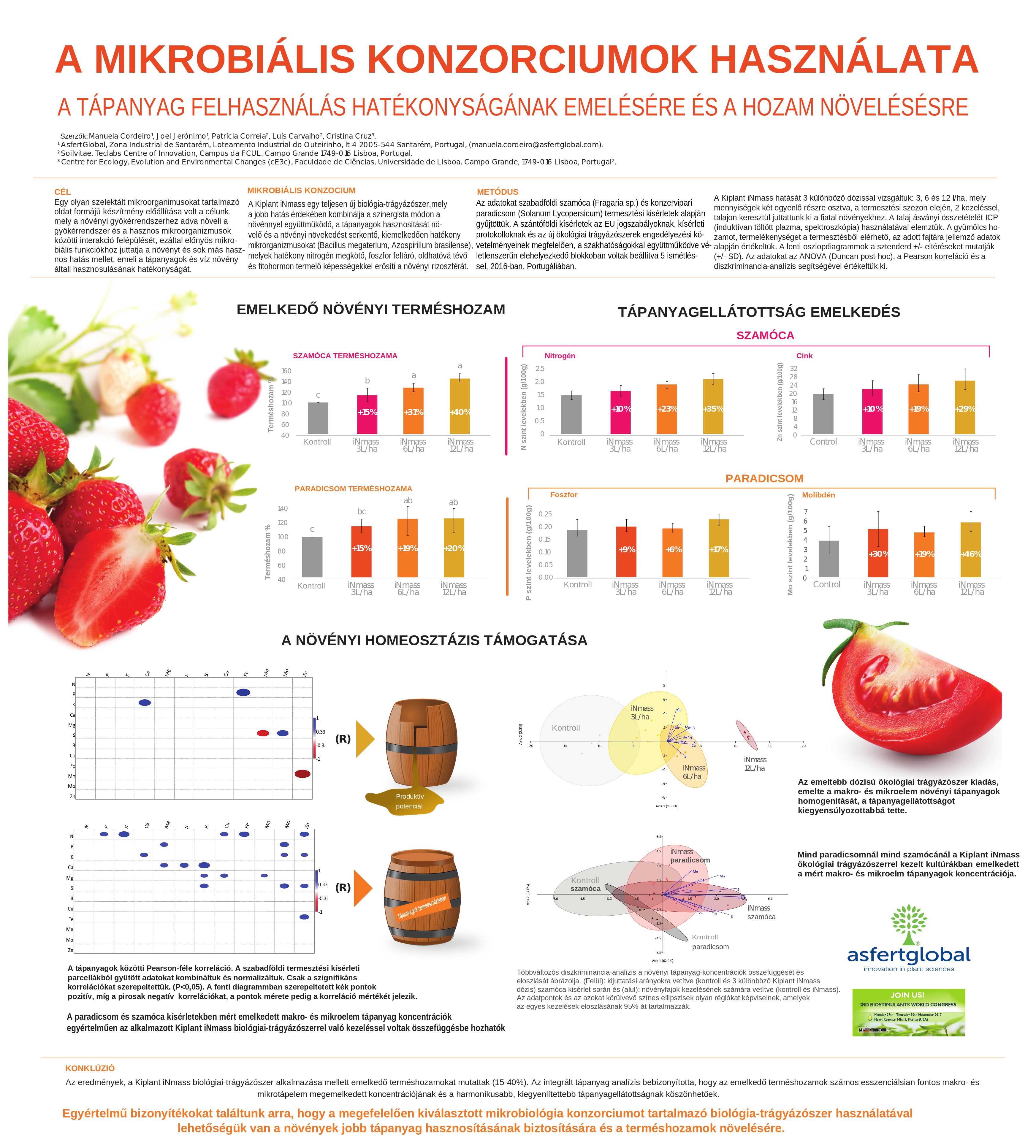 Az Asfertglobal és a Kertcenter közösen végzett, 2023-as nyugat-dunántúli, szántóföldi kísérletei egyértelműen igazolták, hogy nagyüzemi termesztésben, mind kukoricában, mind pedig napraforgóban 17-20%-kal lehet fokozni a termés mennyiségét precíziós tápanyag utánpótlási alapelvek, környezetbarát növénytermesztési technológia, az új KIPLANT AWAKEN hasznos mikroorganizmusokat tartalmazó oltóanyag és szabályozott tápanyag leadású Plantacote 30-7-7+2MgO (2m) burkolt, karbamid alapú műtrágya, alaptrágya együttes használatának segítségével.