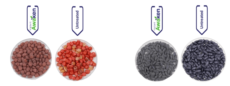 Idén hazai, szántóföldi kísérleteinkkel és laboratóriumi eredményeinkkel igazoltuk, hogy a talajban lévő hasznos mikroorganizmusok száma többszörösére nőtt. Továbbá a növények föld feletti részein erőteljes növekedést, így nagyobb zöld-tömeget, egyúttal nagyobb fotoszintetizáló felületet figyelhetünk meg. Az AWAKEN-el kezelt növények tápanyag-hasznosítása több növénykultúrában többszörösére nőtt a kontrollhoz képest,