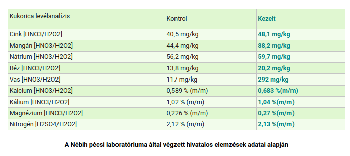 Mind a napraforgó, mind pedig a kukorica esetében a levélanalízisek is bizonyítják, hogy a készítmény serkenti a növényt a tápanyag- és vízfelvételben is. Összességében a növények gyökérzetének dúsulásával, zöldtömeg-növekedéssel, tehát erősebb szár képzésével, több levélemelet és nagyobb levélfelület fejlesztésével a dőlésnek és bármilyen stressznek is kevésbé kitett állományt kapunk. Ezáltal, a növény fiziológiai folyamatainak serkentésével jelentős hozamnövekedést is értünk el.