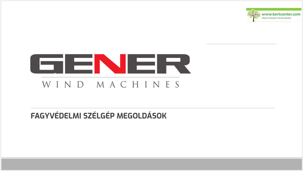 2016-ban alapították a céget - Gyár Adana-ban, míg az értékesítés Isztambulban található (Törökország) - Professzionális fagyvédelmi szélgépek előállításával foglalkoznak - 6.000 m2 gyárterület - Innovatív és fenntartható fagyvédelmi megoldásokat kínálnak. Tapasztalt, fiatal , professzionális mérnök csapat és a legmodernebb gépesítési, automatizálási megoldások jellemzik a céget. A Kertcenter Kft. kizárólagosan képviseli, forgalmazza és szervizeli Magyarországon a GENER szélgépeket