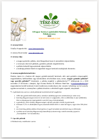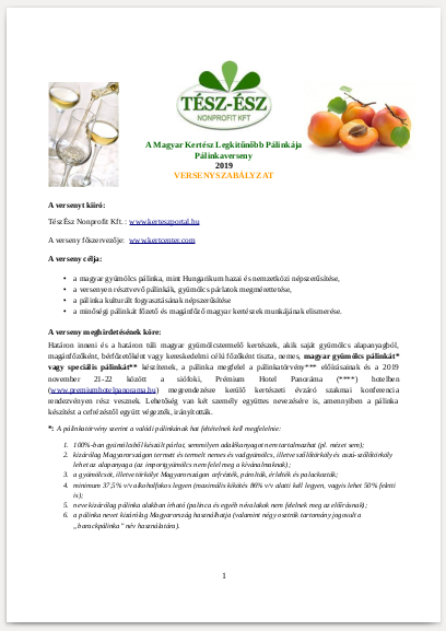 A Magyar Kertesz Legkitunobb Palinkaja 2022 VERSENYSZABALYZAT