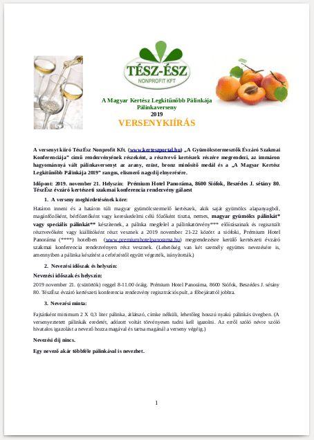 A Magyar Kertesz Legkitunobb Palinkaja 2019 VERSENYKIIRAS A Magyar