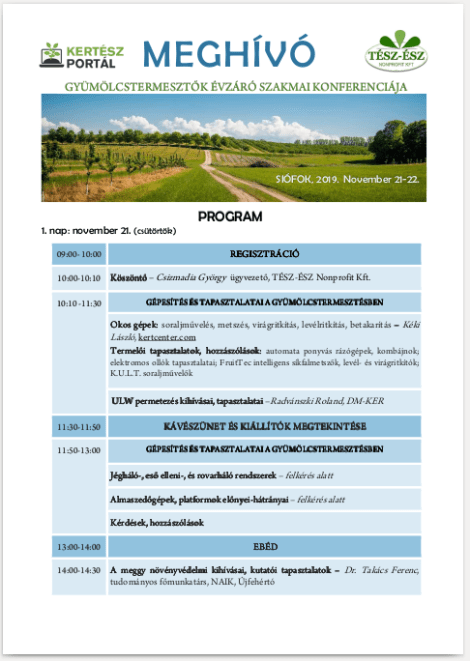 Meghivo Gyumolcstermesztok evzaro szakmai konferenciajaó 2019 november 21-22